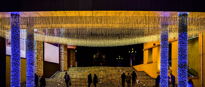 商業(yè)建筑夜景照明工程展示了商業(yè)繁華的夜景氛圍,商業(yè)建筑往往坐落在城市人流多地段,處在城市的經(jīng)濟(jì)中心或區(qū)域經(jīng)濟(jì)中心,是夜晚人群聚集比較密集的地方。商業(yè)建筑夜景照明工程應(yīng)該體現(xiàn)出其繁華的氣氛,綜合考慮亮燈水平、明暗關(guān)系、光色及照明手法的整體協(xié)調(diào)性。