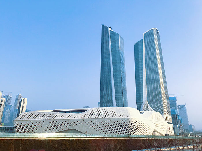 在“青奧”公園項目中需要與幕墻施工穿插進行,工期很短,而且在施工人員進場的時候所有地面鋪裝工作已完成90%左右,所有幕墻已全部施工完畢,電氣配管鋪設非常困難,所有已鋪裝好的地磚需要拆除才可以滿足最基礎的管線鋪設的條件。