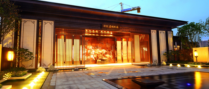 屋頂+屋身同時照明的解決方案,可以根據(jù)中式建筑的結(jié)構(gòu)、明暗關(guān)系來決定燈光的照射角度和方向,突出開間的柱身韻律和檐下斗拱的層次,用光線大面積渲染屋身,勾勒局部有曲翹的屋頂,也可以用投光燈在特定的位置、角度勾勒中式建筑的輪廓,對古建筑屋脊或其他細(xì)部裝飾進(jìn)行局部重點(diǎn)照明,用以強(qiáng)調(diào)中式建筑的古典美、建筑的神韻,同時進(jìn)一步增加中式建筑在夜間的文化韻味和欣賞價值、商業(yè)價值。