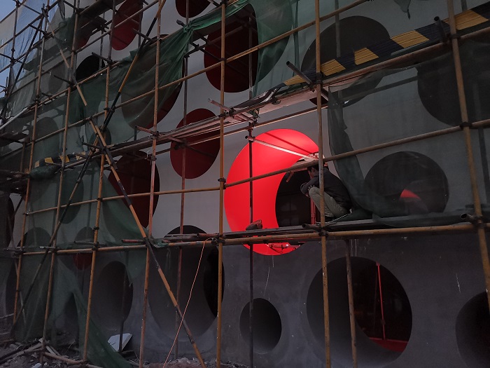 為最佳還原美術館正面圓形結構的顏色和整體形態,信達電通采用照度4000k-4500k的投光燈。并在實施中根據樓體的實際情況不斷調試,調整燈具的位置和發光角度,以實現預期的照明效果。
