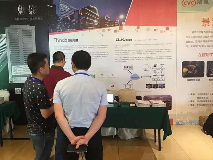 /信達(dá)電通研發(fā)中心工程師李衛(wèi)(左)介紹“鼎立慧聯(lián)”智慧照明云平臺(tái)/
