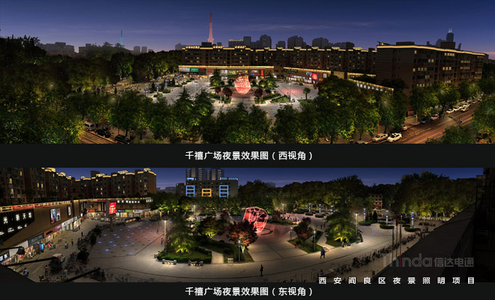 閻良區(qū)亮化示范街部分樓宇、景觀亮化設(shè)計效果圖與亮化實施后的實景賞析: