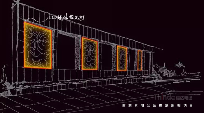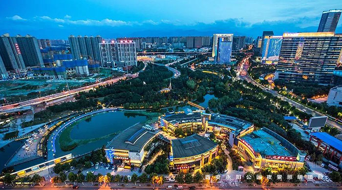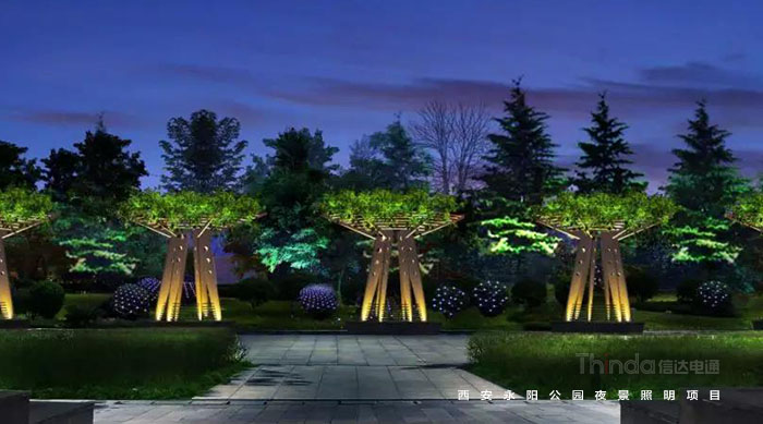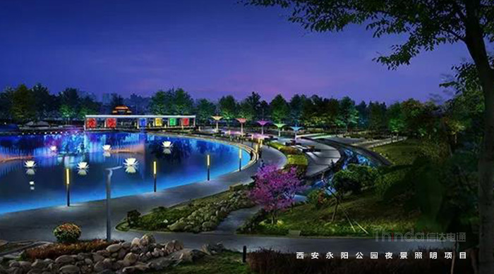 永陽公園是西安一個別開生面的科技公園,因地處唐代長安永陽坊而得名,位于西安市丈八東路和西灃公路十字路口,是由西安高新技術產業開發區興建,占地10萬平方米,2006年對外開放。繼2016年完成西安高新區夜景亮化設計之后,信達電通對永陽公園進行夜景照明規劃設計。