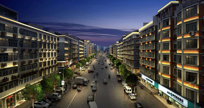 三級(jí)建筑照明:以沿街道路低矮居住類建筑為主,定義為三級(jí)照明等級(jí),主要表現(xiàn)建筑頂部及立面重要結(jié)構(gòu)光。